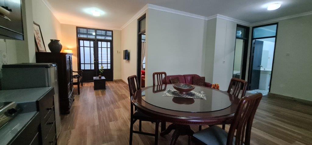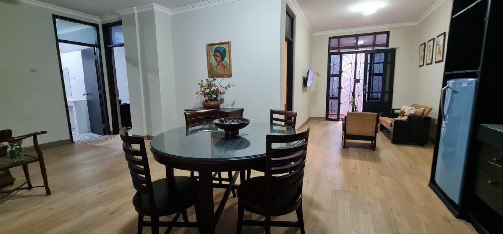 Dengan ruang tamu yang luas dan terbuka, apartemen ini sangat ideal untuk menerima tamu atau mengadakan pertemuan, menciptakan suasana kerja yang nyaman dan produktif. Dilengkapi dengan sofa dan meja kayu bergaya ethnic, memancarkan kehangatan dan keanggunan. Balkon dengan sirkulasi udara yang baik menjadi tempat sempurna untuk bersantai.