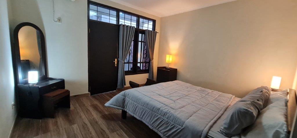 Nikmati waktu luang di balkon pribadi pada kamar utama, sempurna untuk bersantai. Dengan furniture bergaya rumahan, Anda akan merasa seperti di rumah sendiri. Ruang tamu yang luas dan dilengkapi dengan meja kayu dan sofa yang nyaman, menambah kesan hangat rumah sendiri.